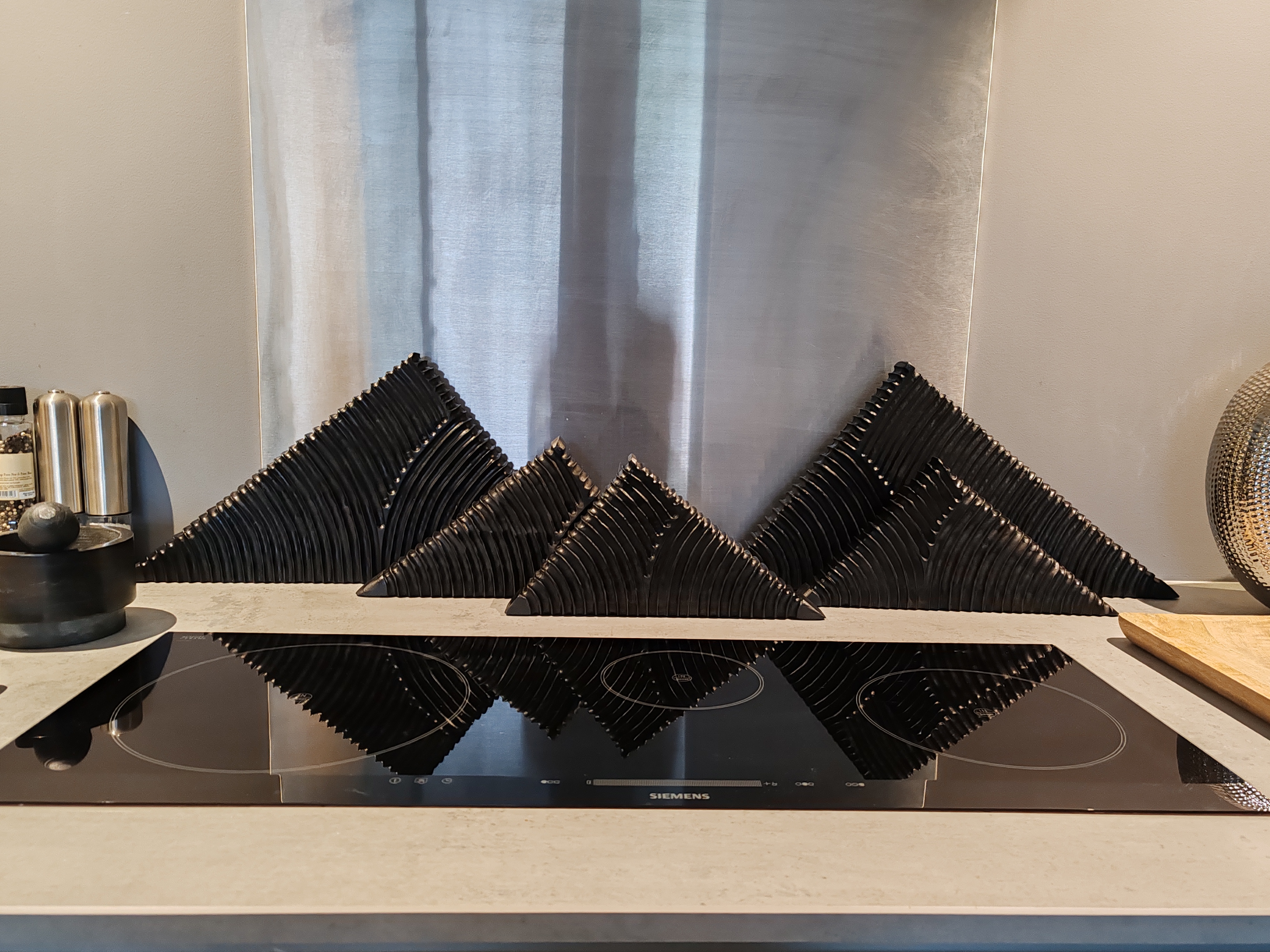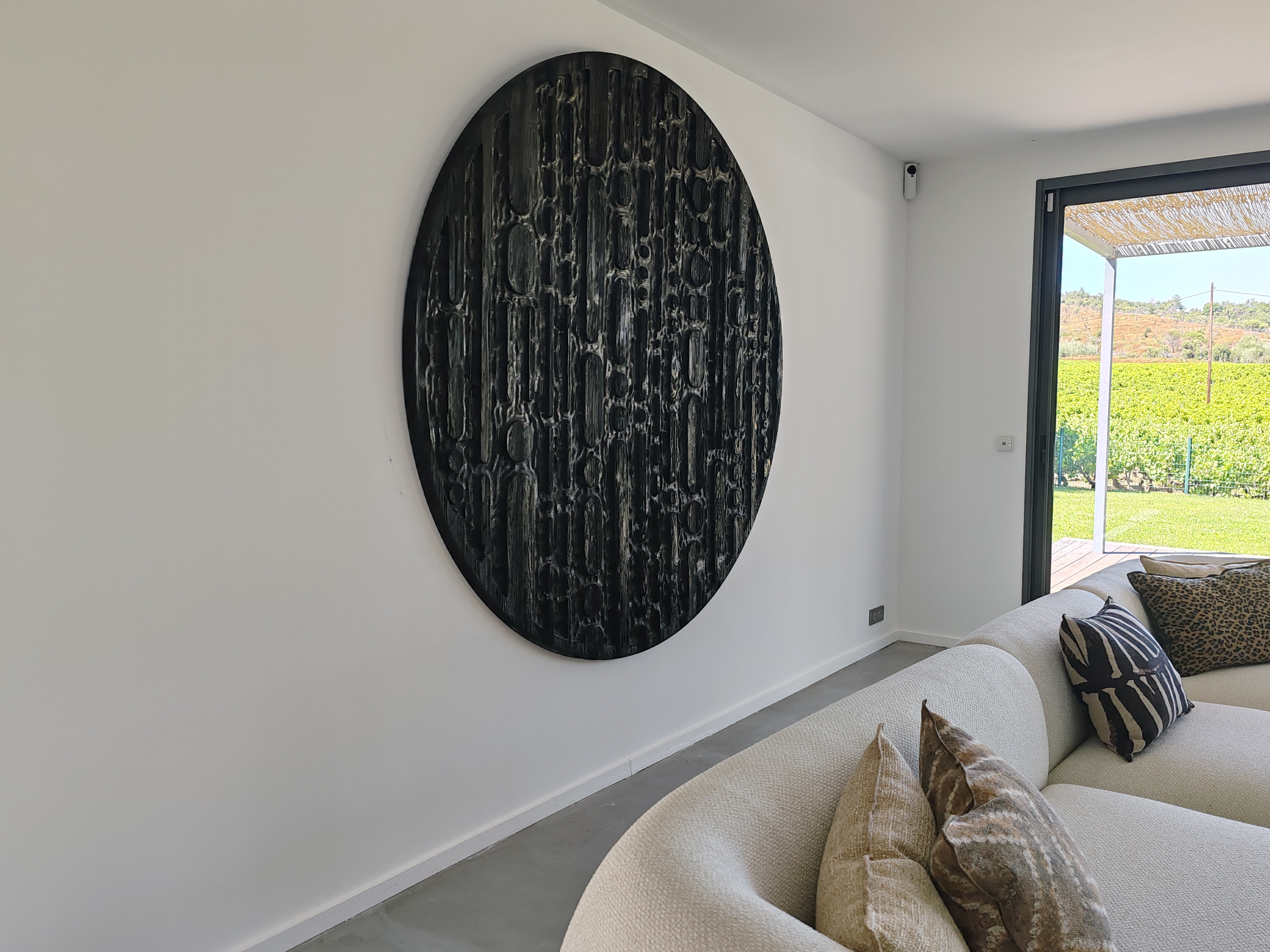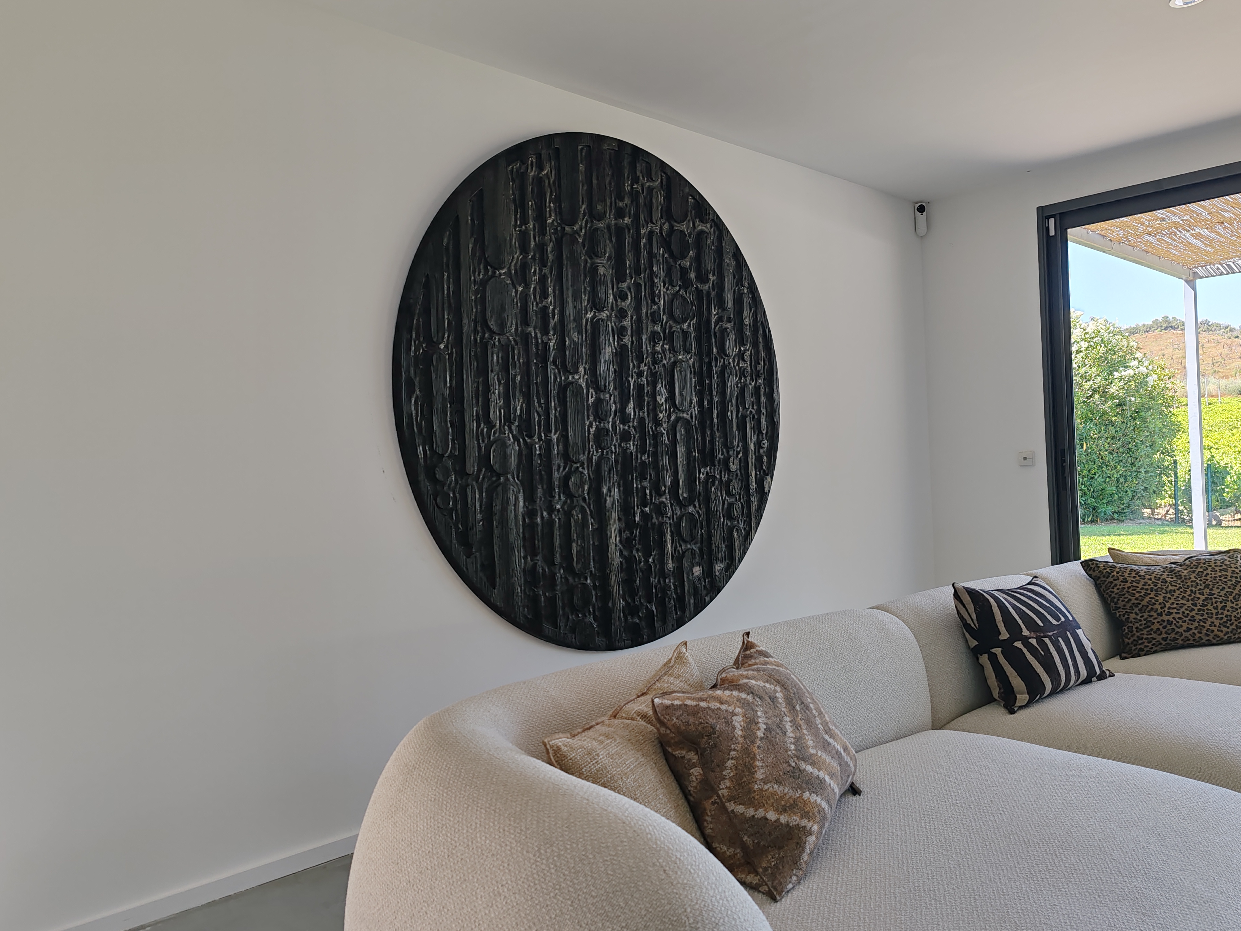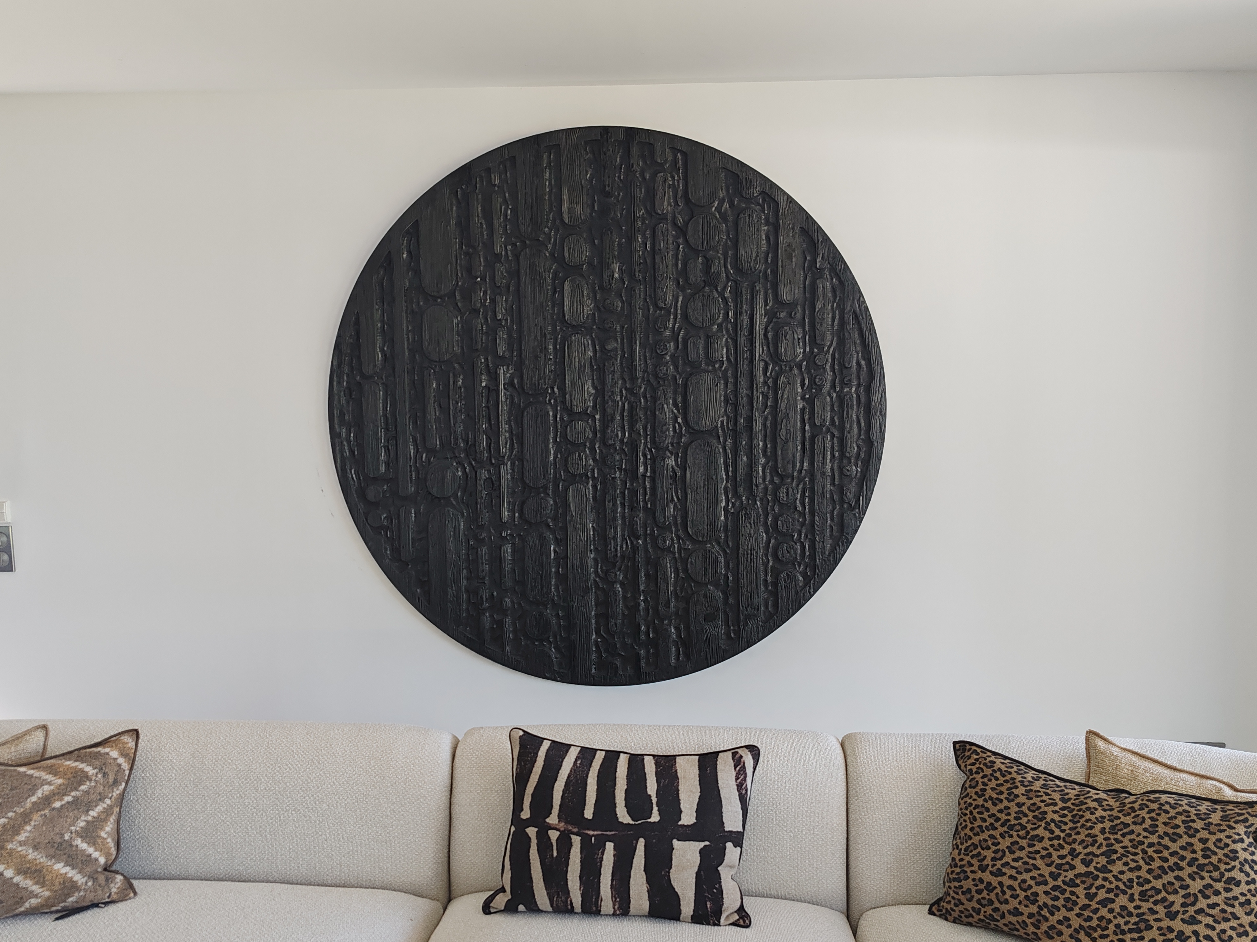 En collaboration avec "Maison Essenza", livraison et accrochage chez une cliente, de la sculpture murale "Black Dakhla".